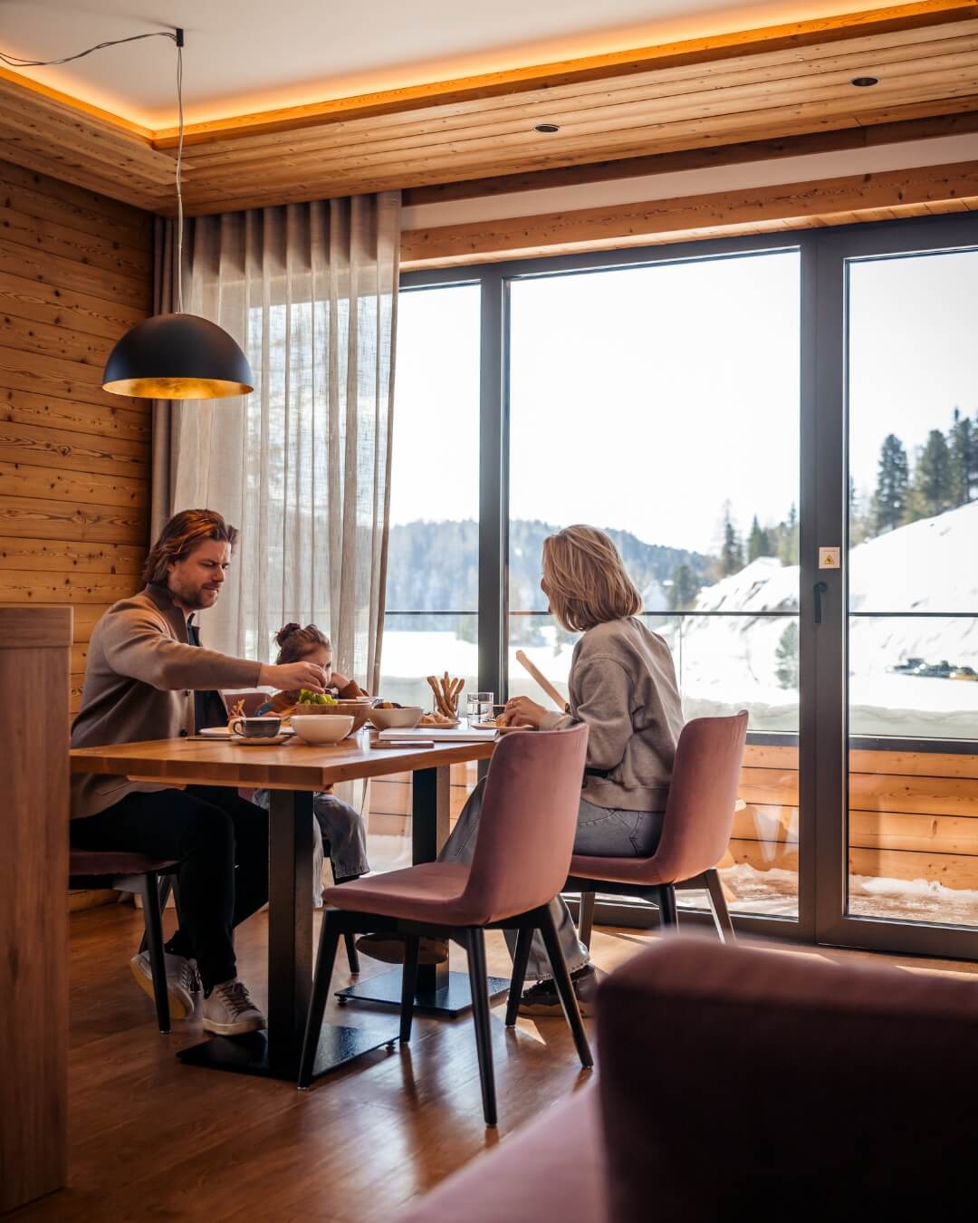 Jeder Raum ist darauf ausgelegt, ein authentisches Berggefühl zu vermitteln – fernab von Lärm, Hektik und urbaner Routine. Das Thema Bergwelt zieht sich durch alle Bereiche: von der Lobby über das Restaurant bis hin zu den Apartments.